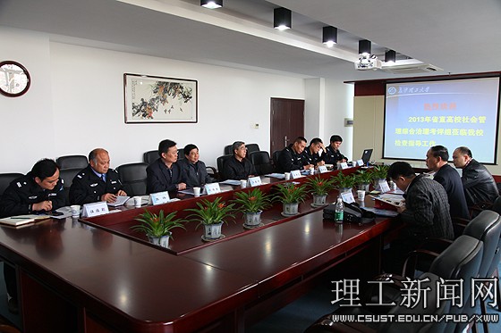 11月19日,由省委教育工委副巡视员邓江祁带队,省公安厅国保总队副调研员欧勇,省教育厅工委维稳办干部王尔希等专家组成的考评组来我校进行2013年社会管理综合治理考评检查。校党委书记王耀中,校长郑健龙,纪委书记谈传生接见了考评专家。
