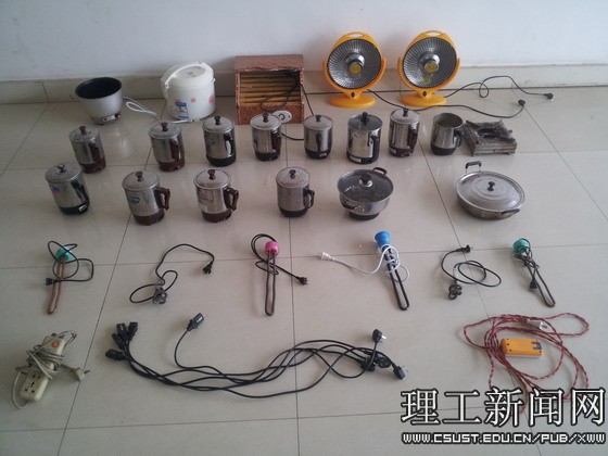 晚8点半,专项检查在云塘校区和金盆岭校区同时拉开序幕,检查实行组长负责制,检查人员110余人分16个小组对全校31栋学生公寓进行了安全隐患排查,在检查中,对发现的问题提出了整改意见和建议,并把发现的问题记录在案,安排专门人员进行整改监督,能现场进行整改的进行了现场整改。此次检查,共查处安全隐患563起,收缴热得快、电热杯、电取暖器等大功率电器154件。