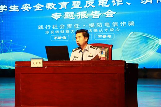 报告会上,李云帝介绍了长沙市防范电信诈骗工作情况,通报了一批典型案例,详细剖析了电信诈骗案件的特征和主要类型。李云帝就自己分管的工作,全面介绍了长沙市特别是学校防范电信网络诈骗工作开展情况,为构建平安校园采取了一系列举措,付出了巨大的努力。他指出,高校电信网络诈骗案件高发,特别是今年以来连续发生多起大学生被骗事件,通报的发生在长沙市高校的4起学生身边的典型案件所揭示的犯罪手段值得全体学生警觉。他希望全体学生提高自我安全防范意识,不贪小利,不好高骛远,不想天上会掉馅饼,自觉做到“五不信”“五不露”“五不转”“五不做”“五慎接”,共同提高电诈识别能力和防范意识。