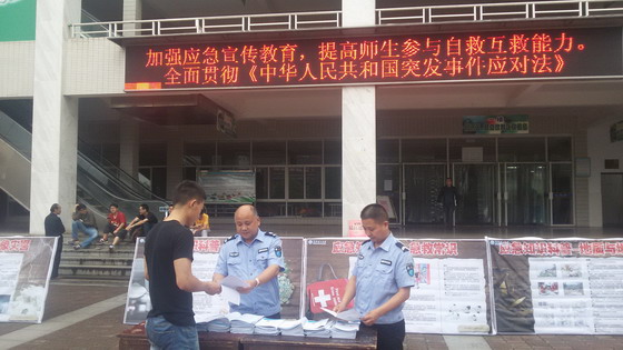 在“5·12”汶川特大地震六周年和第六个“全国防灾减灾日”到来之际,按照湖南省政府办公厅和省教育厅有关通知要求,学校保卫处组织各二级单位从5月12日起,在校园开展为期一周的应急知识宣传活动。本次活动旨在全校广泛宣传和普及应急常识,不断增强广大师生的风险防灾意识,动员大家了解、参与、支持应急管理工作,提高大家自救互救能力,为创建“和谐校园、平安校园”创造良好的条件。