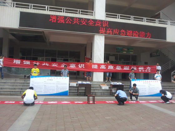 为增强我校师生公共安全意识,提高我校师生应急避险能力,根据省政府办公厅文件要求,我校于5月14日组织各单位、各学院开展了应急知识集中宣传活动。