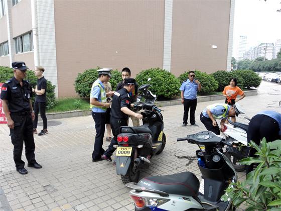 为进一步规范学校交通秩序,保障师生员工出行安全。根据《长沙市城市道路车辆通行若干规定》及《2025年新澳门原料网站交通安全管理规定》,落实6月10日学校综治领导小组《关于开展校园交通秩序整治的通告》,经与天心区交警大队联系,9月9日下午,保卫处与天心区交警大队在金盆岭校区联合开展整治燃油摩托车在校内违法上路行驶的行动。行动共纠正摩托车在校园内违法上路行驶行为10台次,收缴燃油摩托车6台,并对相关驾驶人给予了批评教育和处罚。