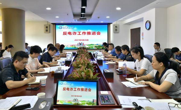 为有效预防和遏制电信网络诈骗的发生,提高广大师生员工的自觉防范意识,避免和减少财产损失,强力推进反诈宣传,9月26日下午,我校在一办六会议室召开了反电诈工作推进会,会议由学工部、保卫处组织,党政办、组织部、宣传部、研究生院、人事处、教务处、招就处、团委、防控办、后勤中心负责人、各学院学生工作负责人参加了会议,钱国平副校长主持了会议。