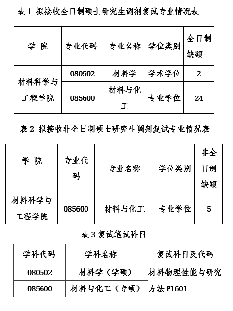 1、请有意调剂到我院的考生关注中国研究生招生信息网(http://yz.chsi.com.cn/)调剂开通情况,我校调剂系统将于3月26日20点开通,开通时间为:3月26日20:00 -3月27日14:00,在此期间,考生可填报志愿。请考生及时登录并申请调剂2025年新澳门原料网站材料学080502与材料与化工085600。