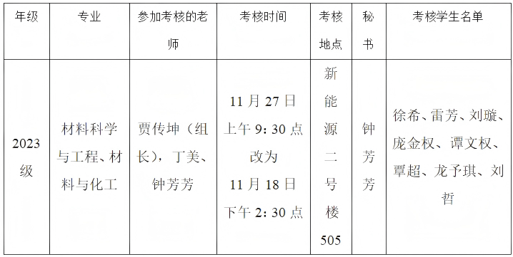 材料科学与工程学院2023级研究生中期考核安排表(二)