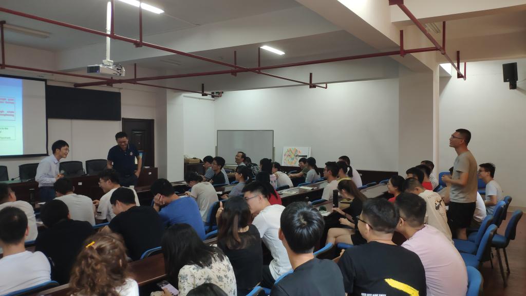 刘小春博士是材料学领域知名专家,其相关研究成果发表在Science、Acta Materialia和Scripta Materialia等国际期刊上。刘博士介绍了自己的研究成果,通过可控制备纳米尺度低能界面,突破金属材料的晶粒细化极限,在更大的“结构尺寸-性能”窗口探索材料科学中的新问题、新现象与新机制。他提出两个观点:一是基于小角晶界的Taylor位错强化机制与本征低能界面属性,提出了利用纳米尺度小角晶界强化材料,提高材料结构稳定性的观点。这一观点在金属Ni中被验证,打破了“强度-热稳定性”倒置关系。二是在合金材料中,首次在极低温条件下发现变形诱导溶质原子偏聚的现象。并提出“塑性变形可以作为一种手段,有效地调控溶质原子再分布”的观点。他由浅入深让学生们基于这两个观点,在铝合金中实现了溶质原子多级偏聚与晶界耦合强化,在纳米尺度设计高性能合金材料提供了新的视角有了更加深刻的了解,受益匪浅。