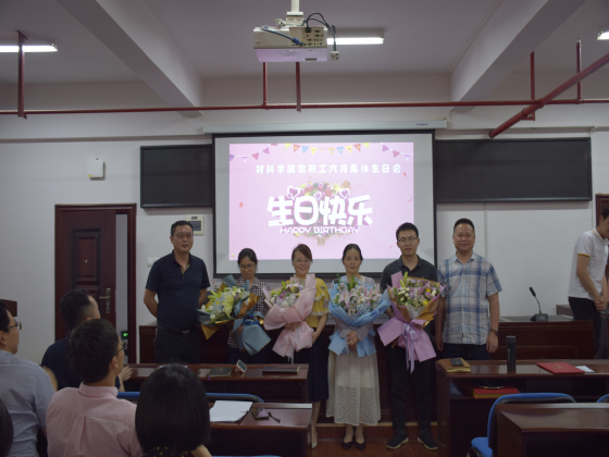 为了提升教职工的认同感和归属感,营造和谐宽松的氛围,结合党史教育“学史力行”专题,材料学院分工会以全心全意服务教职工为理念,本着“关爱老师、快乐工作”的原则,在5月11日和6月8日,材料学院分工会在新能源大楼1-302举行了教职工“过生日、送祝福”活动,活动由党总分工会主席陈华主持,院全体教职工参加了活动。