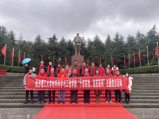 为引导党员带头深刻领会“两个确立”重要意义,增强“四个意识”,坚定“四个自信”,坚定不移做到“两个维护”,认真履行职责,勇于担当作为,真正发挥好共产党员的先锋模范作用, 2月17日,材料学院党总支结合当前学院工作实际,赴伟人故里韶山开展了“干在实处、走在前列”主题党日活动。学院领导班子全体成员,各支部书记、系中心主任,行政实验教工党支部全体党员参加了活动。
