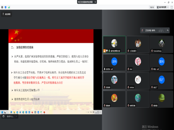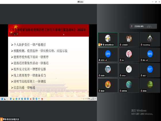 会上,秦伟首先介绍了此次专题党员大会召开的背景,最近一段时间,新冠疫情在全国出现呈现点多、面广、频发特点,长沙部分学校也出现了多起确诊病例,学校疫情防控工作面临新的严峻形势。与会党员一起学习了3月17日中央政治局常委会会议相关精神,学习了习近平总书记关于疫情防控工作的重要讲话。接下来,向全体党员传达了湖南省教育厅《关于切实强化当前学校疫情防控工作的通知》、《关于学校新冠肺炎疫情防控工作有关事项的紧急通知》以及学校关于新冠防控的相关文件《关于从紧从严做好当前学校疫情防控工作的通知》、《关于进一步加强疫情防控监督检查工作的通知》等文件精神。会议指出,大家一定严格遵守中央、省委省政府和学校有关疫情防控的规定,做到非必要不离开长沙市区;住在校外的教职员工尽可能保持学校与住地“两点一线”;严禁未经批准私自离开长沙市区;出入校园佩戴口罩等注意事项,并随时做好线上教育教学准备,确保教学活动的正常开展。