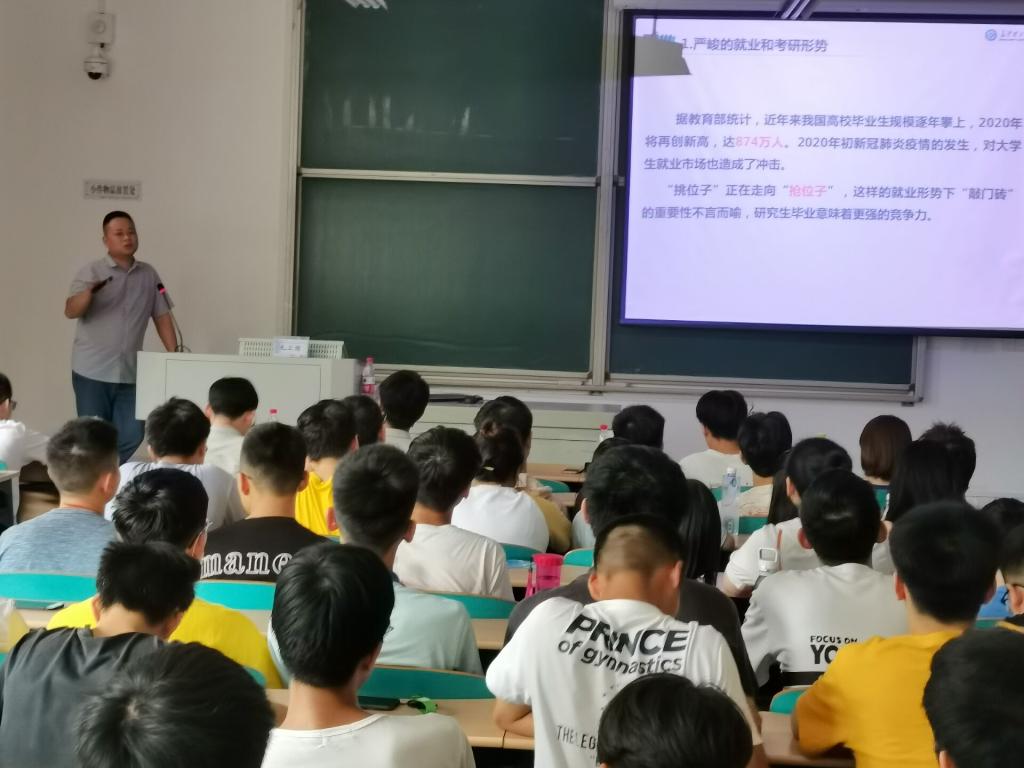 临近毕业之际,为帮助毕业生做好考研规划,增强同学们的考研信心,9月11日,材料学院于工三A-209举办了考研指导讲座,本次讲座由研究生院副院长何忠明教授和材料学院院长毛卫国教授主讲,院党总支副书记陈华、副院长范金成、辅导员陈鑫林出席,全体毕业生参加。