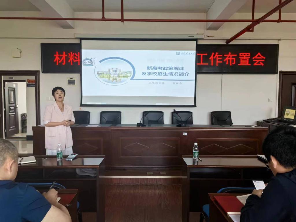 4月23日,材料学院在新能源一栋302会议室召开新高考政策解读及招生宣传会议,本次会议由招生科主任贺佐杰主讲,学院全体教职工参加。