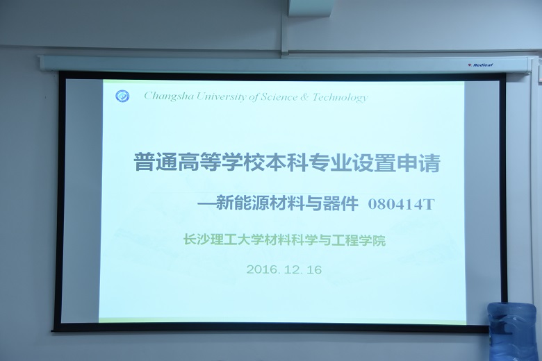 2016年12月16日,在新能源大楼317会议室,材料学院组织召开了新增专业“新能源材料与器件”申报的专家论证会。论证会邀请了中南大学赖延清教授、湖南大学王双印教授、湖南师范大学苏胜培教授、湘潭大学黎华明教授及校教务处刘朝晖教授、规划处卢毅教授、能动学院院长陈荐教授等材料方面的专家,组成评审专家组对新增专业申报进行论证。会议由晁自胜院长主持。