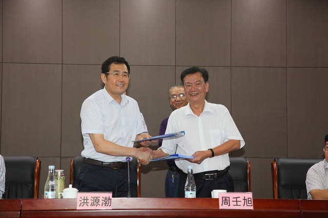 洪源渤副校长与广东金东海集团董事长周壬旭签订了校企产学研战略合作协议,并代表学校向出席大会的企业家代表、校友嘉宾、离退休老同志表示热烈的欢迎!向为筹建学院做出积极贡献的各位老师、各位企业家和众多校友表示最诚挚的谢意!他还对材料学院提出三点希望,一是博采众长,办一流本科教育;二是整合资源,创一流科研业绩;三是强化合作,做一流成果转化。随后,洪源渤副校长为材料学院揭牌并授牌。