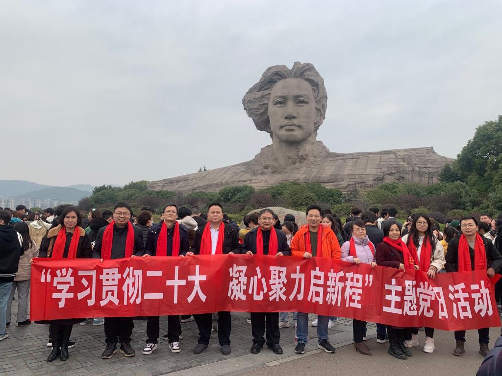 为引导党员带头深刻领会“两个确立”重要意义,增强“四个意识”、坚定“四个自信”、做到“两个维护”,加强党性锻炼,认真履行职责,勇于担当作为,真正发挥好共产党员的先锋模范作用, 2月17日,开学前一天,材料学院党总支将理论学习中心组(扩大)2023年第1次集中学习安排在红色教育基地,到橘子洲开展“学习贯彻二十大,凝心聚力启新程”教育实践活动。学院党总支理论学习中心组全体成员、各党支部书记、系(办、中心)主任、全体辅导员参加了活动。