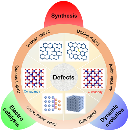 2023年1月11日,张怡琼副教授以第一作者与通讯作者在《Advanced Materials》期刊上发表题为“Insights into the Dynamic Evolution of Defects in Electrocatalysts”的综述论文。电催化被认为是缓解能源问题并以温和方式生产燃料或增值化学品的最有效方法之一。催化剂是催化体系的核心,高效的电催化反应离不开催化剂的精心设计。开发高效稳定的电催化剂对发展先进的能源转化装置具有重要的战略意义。早期研究表明电催化剂表面缺陷的构筑,对电催化性能的提高具有正效应,追踪缺陷结构的动态变化对于理解催化反应机理有着重要作用。该论文主要围绕缺陷电催化剂最新研究成果,综述了在析氧反应、析氢反应、氮还原反应、氧还原反应、二氧化碳还原反应中缺陷动态演化过程的研究进展以及运用各种先进的原位表征方法探究缺陷的动态演化规律,揭示了缺陷动态演化对催化反应的影响机制。该综述有望为高性能缺陷电催化剂的设计和合成提供借鉴与指导。