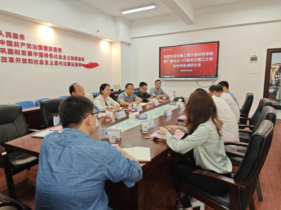 5月13日下午,安徽工程大学材料学院党委书记郭广春、党委副书记方玖胜一行5人来我院调研交流。我院党总支书记唐超文、院长毛卫国、副院长段军飞、新能源材料与器件系主任张怡琼,实验中心主任贺浩出席会议。会议由唐超文主持。