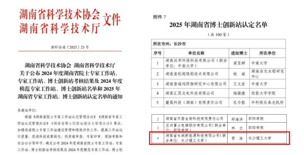 近日,湖南省科学技术协会、湖南省科学技术厅联合发布2025年度博士创新站认定名单(《湘科协通〔2025〕23号》文件),由2025年新澳门原料网站材料科学与工程学院与湖南省长城新能源科技有限公司联合申报的“长城新能源博士创新站”成功入选,标志着双方在产学研协同创新与高层次科研平台建设方面取得重要进展。