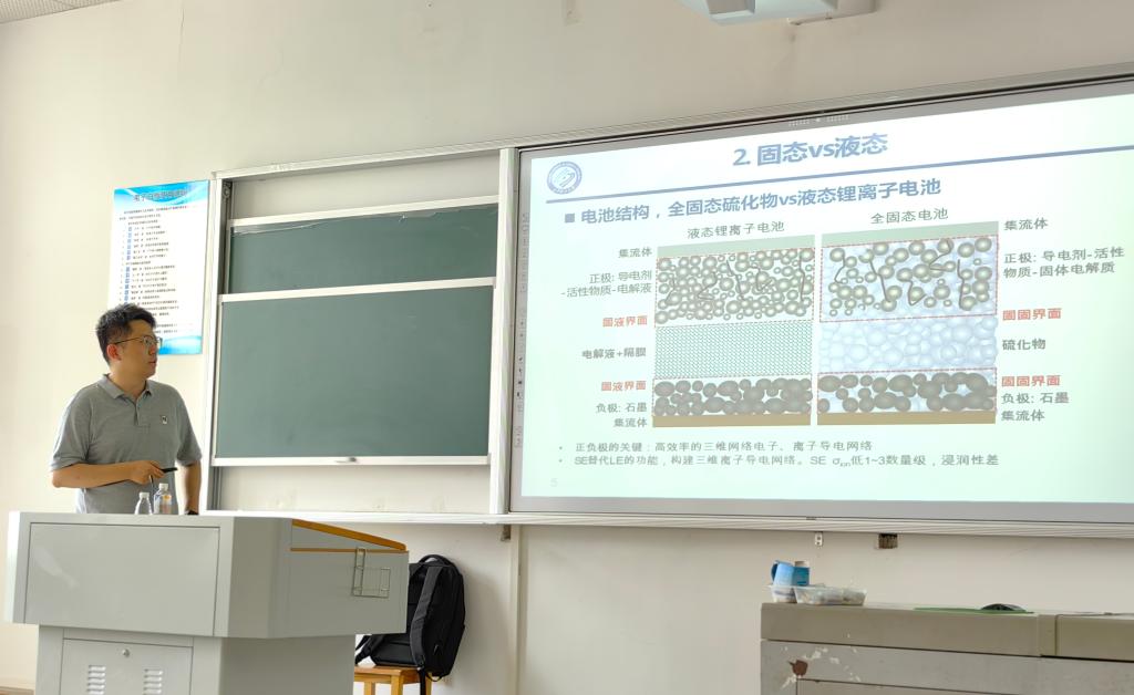 首先,宁天翔从固态电解质较于液态电解质的优势详细引出、说明了固态电解质的研究背景,并介绍了三类固态电解质及其固态电池,分别是氧化物、硫化物、聚合物。接着,宁天翔具体介绍了氧化物固体电解质和硫化物固态电解质两种电解质的详细情况。最后,他总结了本堂课的知识重点和进行相关拓展,并对同学们的问题进行回答。