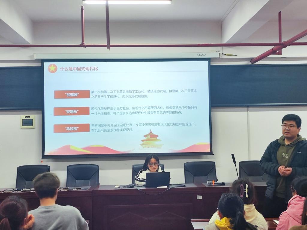 各组宣讲结束后,学员们积极地进行了心得分享:胡丽丽以组内宣讲作为引入,提到应将对先辈的继承和自我的发展运用到自身,并以奉献之心投入到祖国所需要的地方。肖应广则谈论到了党的发展,并表明了中国式现代化的重要性,要走中国自己的道路,发展中国特色社会主义制度。