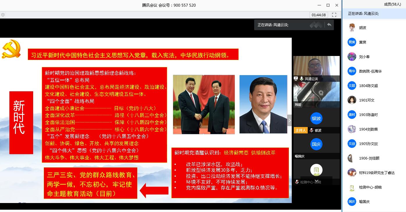 为确保党校学员在疫情期间理论学习不停步,教育活动不断线。4月7日下午,材料学院分党校依托“腾讯会议”网络平台组织第35期入党积极分子培训班第一次专题党课,本次“云党课”由材料学院党总支书记张国强讲授,主题为《重温党的奋斗历程,增强历史使命感》,全体学员参与线上学习。