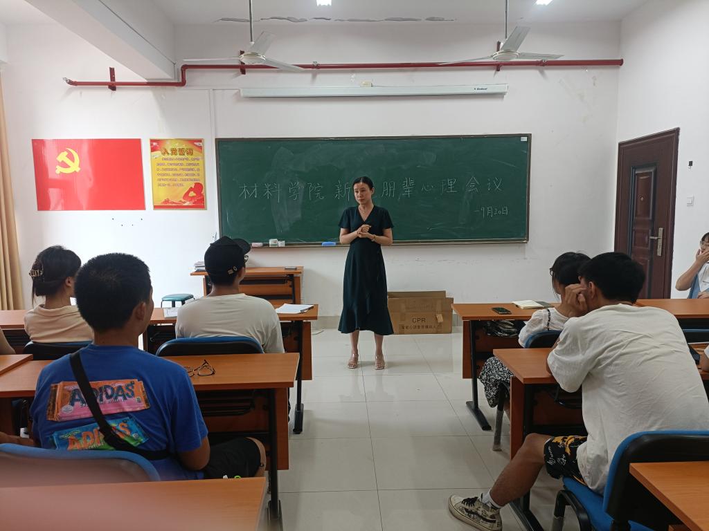 9月20日下午,材料学院在新能源一号楼303召开新生朋辈心理互助员培训会。学院心理辅导员谢易真主持,学院党总支副书记陈华出席,22级朋辈心理互助员参会。