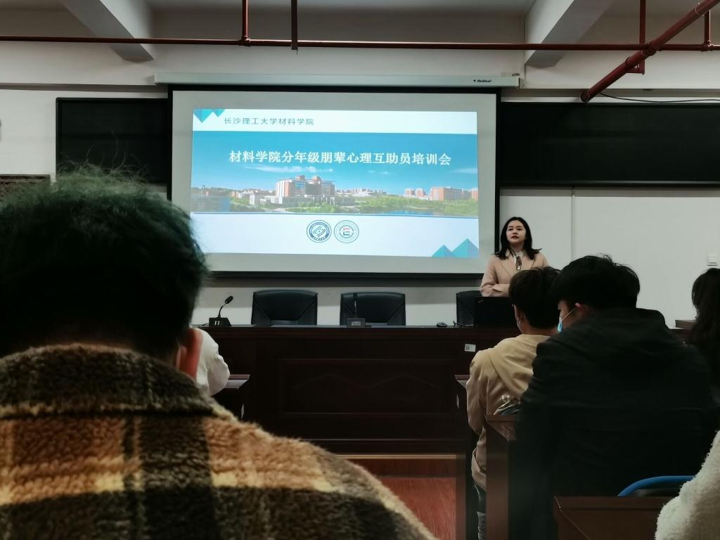 3月1日下午,材料学院在新能源大楼一号楼302召开毕业年级朋辈心理互助员培训会。学院心理辅导员谢易真主讲,毕业年级全体朋辈心理互助员参会。