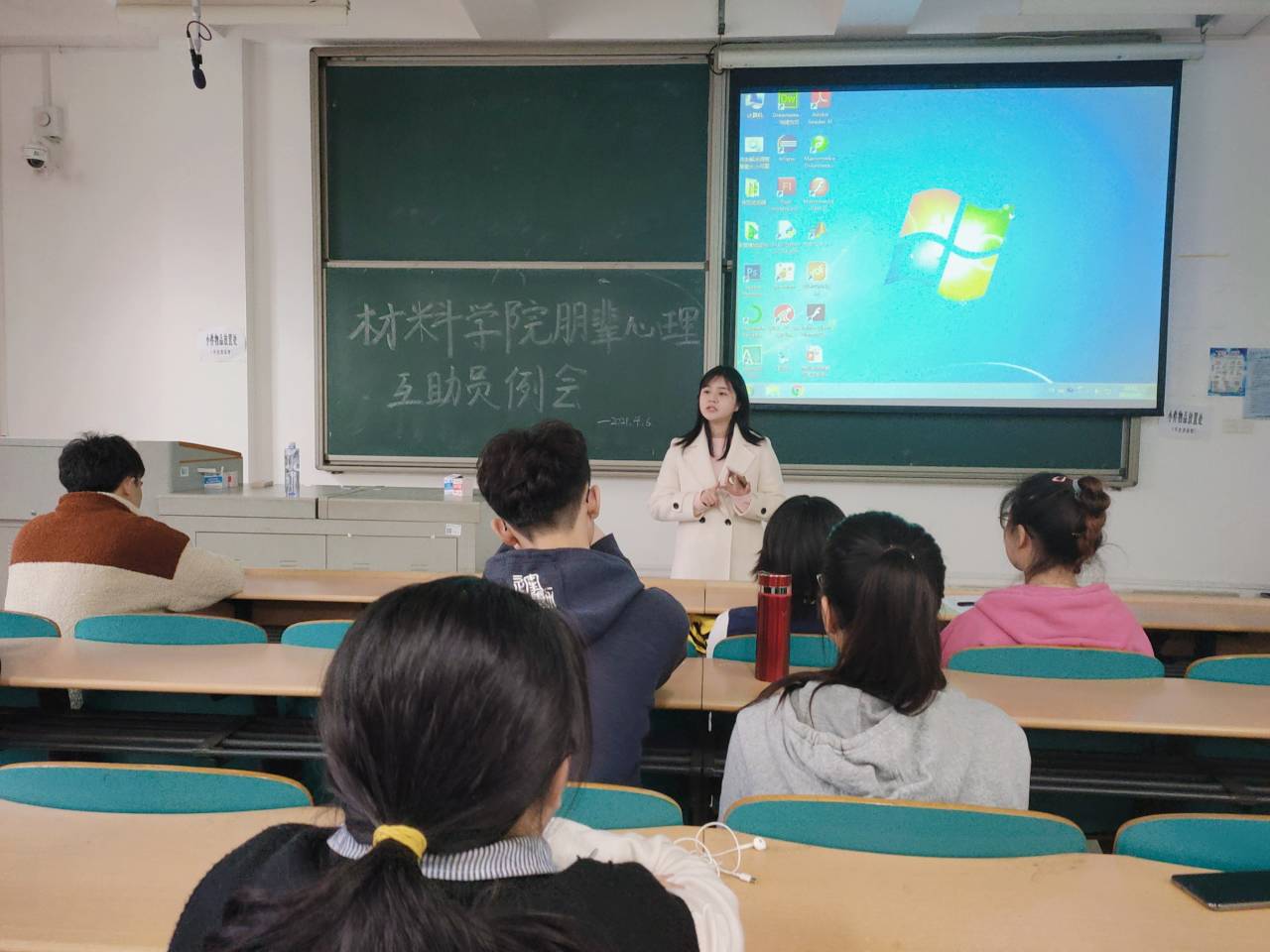 4月6日15:00,材料学院于工科三号楼A316室召开了朋辈心理互助员会议。学院心理辅导员谢易真主持,各年级朋辈心理互助员参会。