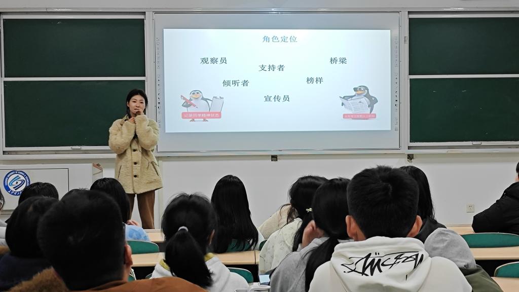 培训首先明确了心理委员在学生心理工作中的角色:既是观察者、支持者和宣传者,也是连接同学与老师的重要桥梁。杨宁强调,心理委员在日常工作中,应具备基本的危机识别与应对能力。