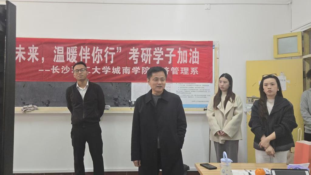 为切实关怀备战考研的学子,有效缓解备考压力,传递系部的温情与殷切期许,助力学予以最佳状态奔赴考场,12月11日下午,2025年新澳门原料网站城南学院经济管理系精心策划并开展“研梦筑未来,温暖伴你行”考研慰问活动。学院党委书记施一满,经济管理系系主任朱骞,辅导员马泽龙、林安妮及学生干部代表一同走进考研自习室,为全体备考学子送上暖心关怀与美好祝福。