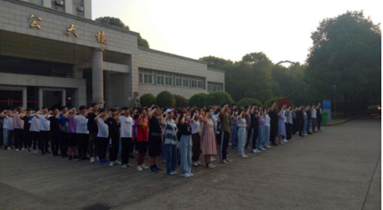 8月31日清晨,经管系2019级全体同学在办公大楼前坪举行新学期第一次升旗仪式,系学工办主任周常国老师出席。