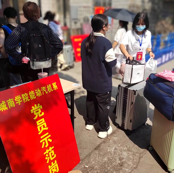 9月10至12日,城南学院的迎新现场出现了一道靓丽的风景——党员示范岗。学院学生党员纷纷加入其中,立足岗位,佩戴“党员示范岗”的胸牌,助力学院顺利完成新生报到工作,展现新时代的党员风采。