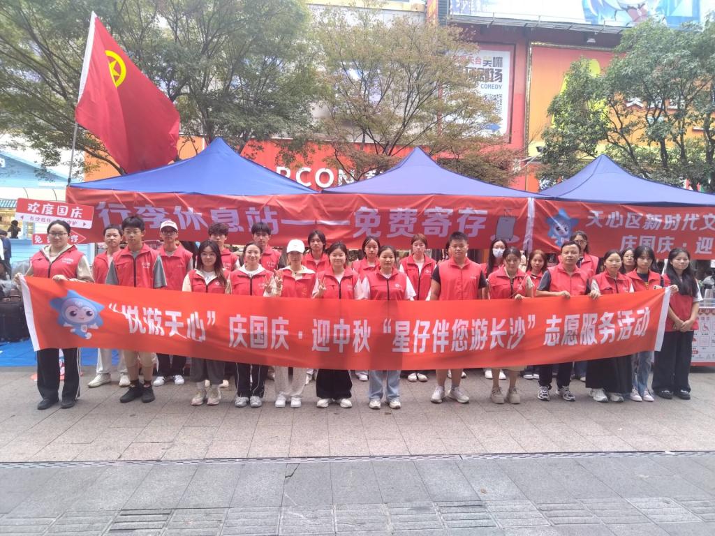 金秋送爽,丹桂飘香。10月1日恰逢国庆与中秋双节来临,2025年新澳门原料网站城南学院14名青年志愿者代表积极参与“悦游天心”庆国庆·迎中秋“星仔伴您游长沙”志愿服务活动。他们在五一商圈、黄兴广场等核心区域,为往来游客提供文明引导、应急帮助、免费饮水等服务,以实际行动诠释青年担当,传递城市温度。