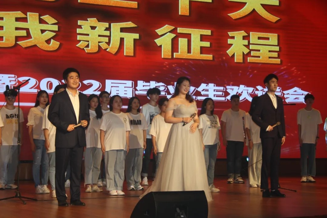 617日晚,城南学院“青春献礼二十大 强国有我新征程”魅力女大文艺晚会暨2022届毕业生欢送会在五教大礼堂举行,城南学院党政领导以及师生代表共一千余人观看晚会。经济管理系迟瑞、王晨歌、刘怡宏、马璐和文法艺术系周雅、史晨蕾同学担任主持。