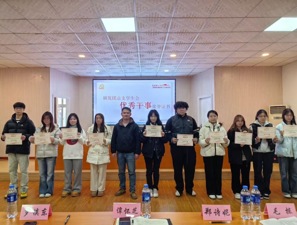 会上,主席团学生代表何书仪围绕“复盘与总结”作核心工作汇报,系统梳理本学期各部门在校园文化活动、学生权益服务、团学组织建设等方面的成果,既肯定亮眼表现,也直面不足并提出改进措施。随后,各部门负责人依次汇报,结合职能分享活动策划、日常服务、团队协作中的经验感悟,剖析问题挑战,明确期末收尾与新学期工作设想,尽显团学干部的责任担当。表彰环节点燃现场氛围,大会宣读优秀干部和优秀干事表彰决定,谭怀芝为获奖个人颁发荣誉证书,见证每一份辛勤付出。