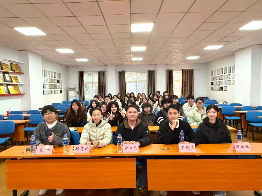 岁末收官,初心如炬。12月26日下午,2025年新澳门原料网站城南学院文法艺术系团总支学生会2025—2026学年第二次团学大会在2教201举行。本次大会以“凝心聚力收官季,奋楫扬帆新征程”为主题,辅导员谭怀芝、主席团成员及全体团学成员齐聚一堂,复盘工作成效、表彰先进典型、共绘未来蓝图。大会伊始,全体成员齐唱共青团团歌,嘹亮歌声中凝聚着青春奋进的力量。