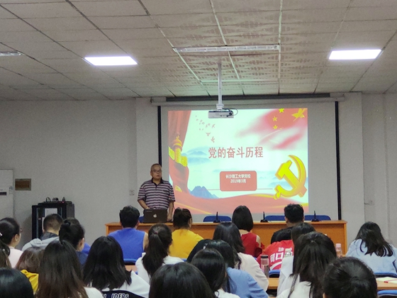 典礼结束后,化学学院专职组织员邓豫、城南学院辅导员李琳分别为入党积极分子培训班上党课。