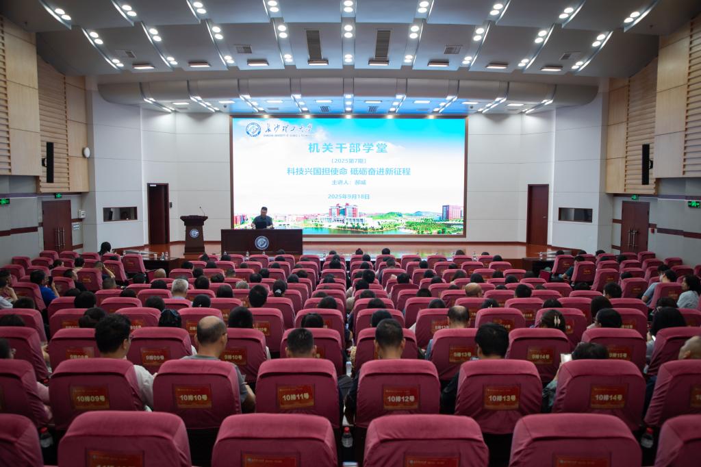 9月18日下午,第七期机关干部学堂在云塘校区图书馆报告厅举行,交通学院副院长郝威进行专题授课,机关党员、干部百余人参加。