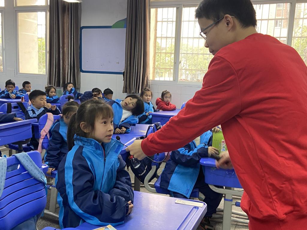 首先,宣讲团成员、全国大学生自强之星杨琪毅结合自身经历,以丰富的音视频、动漫图片等资料,围绕“雷锋的生平、雷锋入队入团入党故事、身边的雷锋、践行雷锋精神”四个方面的内容,向小学生们生动地讲述了雷锋事迹及雷锋精神。他还结合自己所在的博士实践团连续8年暑期前往贫困山村免费给村里危桥、病桥、房屋结构进行检测和加固,解决乡村道路交通不便、住房安全问题,为当地村民节约近20万元检测费用的事迹,来告诉小学生们要努力学习、奉献国家、传承雷锋闪光品质。