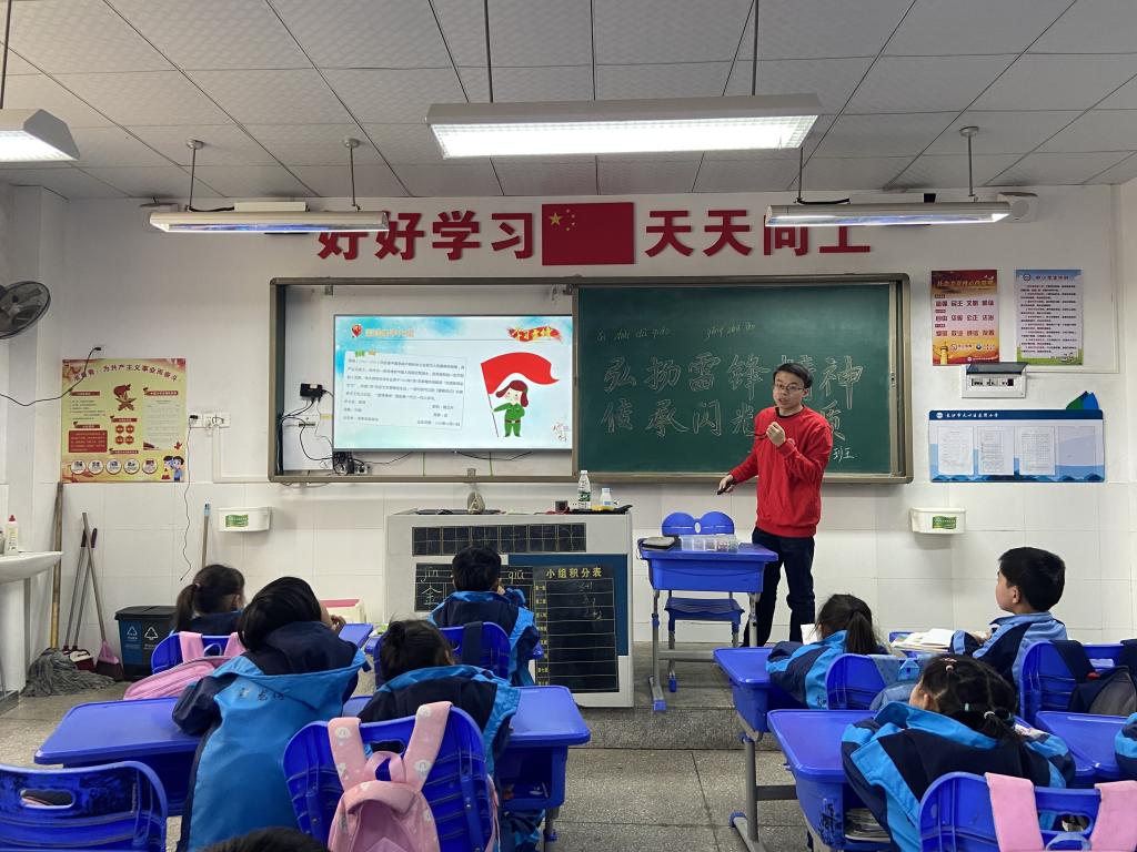 “学习雷锋好榜样,忠于革命忠于党......”,这是从长沙市天心区龙湾小学一年级11班的教室传来的歌声。原来,在毛泽东等老一辈革命家为雷锋同志题词60周年之际,2025年新澳门原料网站土木工程学院学生党员宣讲团,通过故事讲述、雷锋日记解读、雷锋人物画像、红歌传唱、红色经典赠书等形式,将雷锋故事和雷锋精神送进小学生心中。