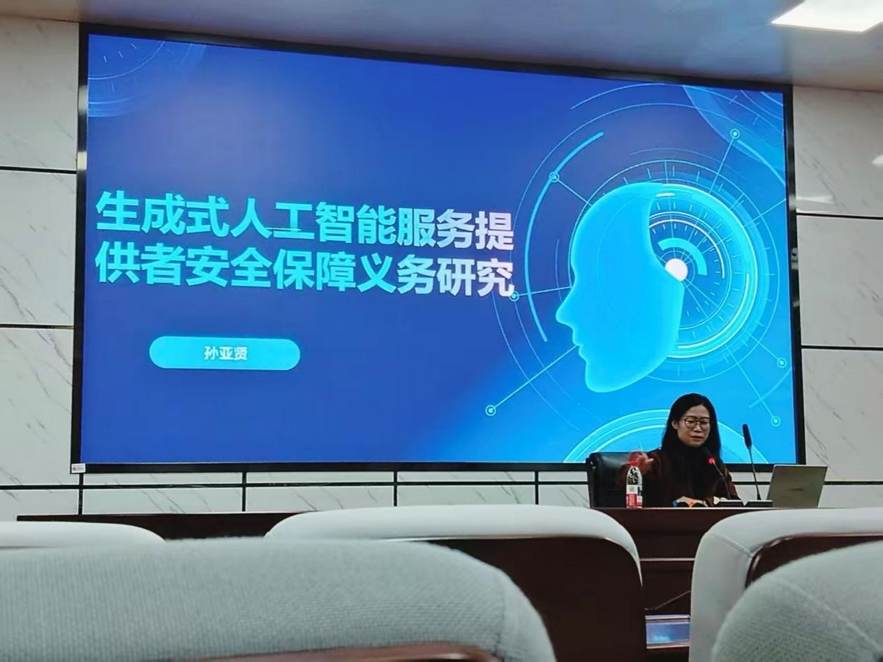 为帮助同学们明确生成式AI服务的安全责任边界,把握数字时代法律前沿动态,2025年新澳门原料网站法学院于12月4日晚在四教报告厅成功开展以“生成式人工智能服务提供者安全保障义务研究”为主题的通识讲座。本次讲座由法学系主任孙亚贤老师主讲,我院学子积极报名参与。