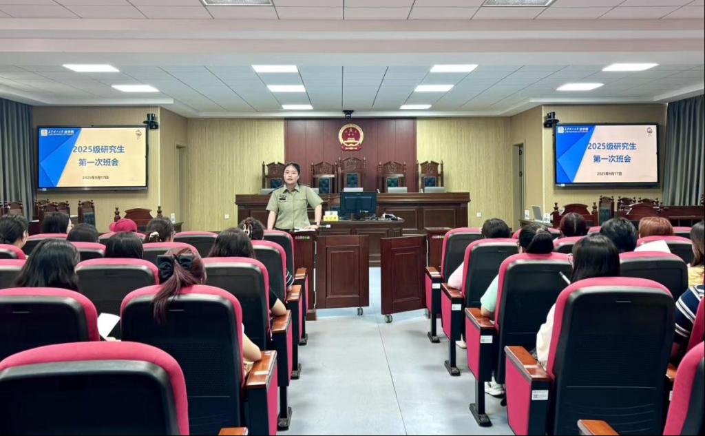 9月17日下午,法学院在4号教学楼模拟法庭组织2025级研究生新生第一次班会。院党委副书记、副院长汪伦出席,辅导员曾宇欣主持,2025级全体研究生新生参与。