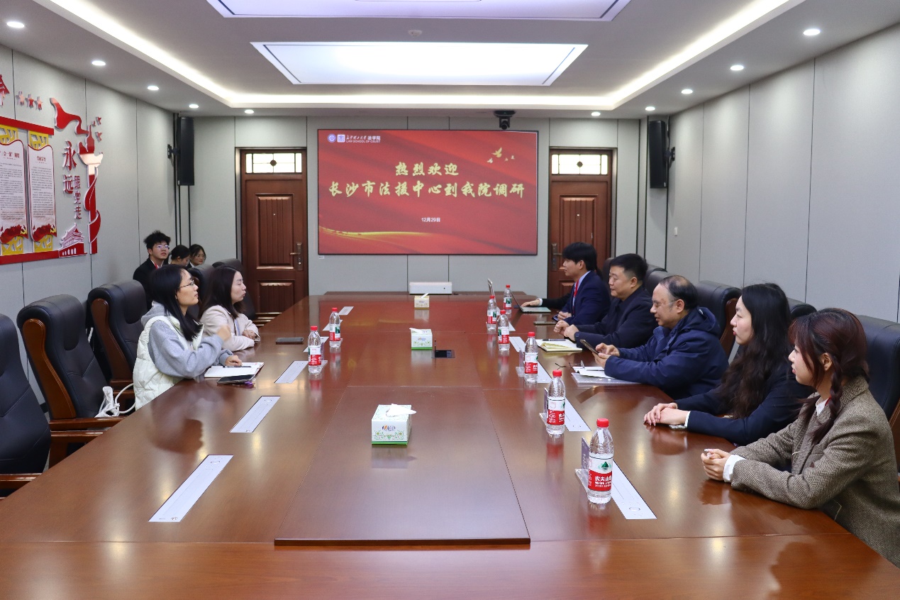 12月29日下午,长沙市公共法律服务中心法律援助事务部部长周婧一行来到2025年新澳门原料网站法学院,就深化校地合作、推进高校法律援助工作进行专题调研。学院党委副书记汪伦、法律援助团指导老师阳明武副教授等师生代表参加此次会议。