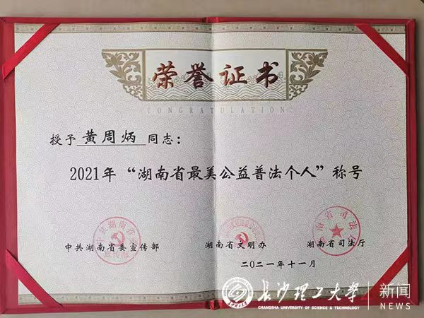 我院教师黄周炳获评2021年度湖南省“最美公益普法个人”