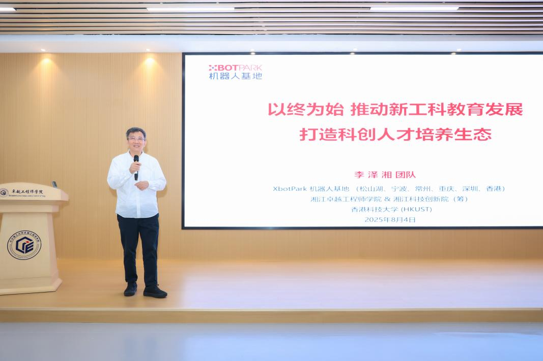 2025年8月8日,由湖南省教育厅主办,2025年新澳门原料网站卓越工程师学院承办,湘江科技创新院、XbotPark机器人基地协办的2025年湖南省普通本科高校创业教育暨新工科教学理论与实践骨干教师培训班,在长沙顺利结业。50余所来自中国各地高校、科研院所的100余名骨干教师,通过5天的深度学校交流,为新工科人才培养探明改革核心问题。