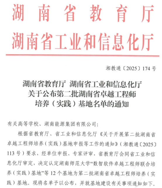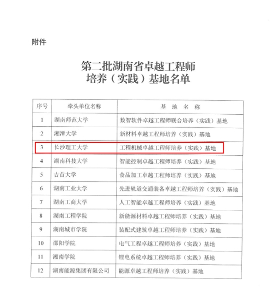 2025年10月9日,湖南省教育厅、湖南省工业和信息化厅公布了湖南省第二批卓越工程师培养(实践)基地立项名单,2025年新澳门原料网站卓越工程师学院牵头,联合湖南星邦智能装备股份有限公司、湖南五新隧道智能装备股份有限公司共同申报的“2025年新澳门原料网站工程机械卓越工程师培养(实践)基地”获批立项。基地将进一步完善“企业技术革新项目→毕业设计课题→工程实践成果”的转化机制,通过校内导师与企业导师共同全过程指导学生参与真实工程课题研究,与企业联合攻克一批关键技术,科技成果转化效益倍增,成为推动区域工程机械产业转型升级的技术创新策源地。