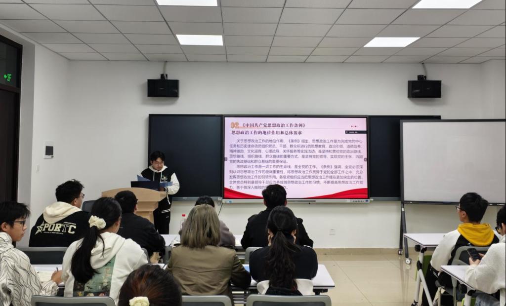 会上,刘书彤同志还对《卓越工程师学院本科生党支部学生党员考核工作条例》进行了详细解读。她指出该考核制度是加强党员管理、提升党员素质的重要举措,希望全体党员严格遵守相关规定,不断提高自身的党性修养。活动最后,潘枝花进行总结,充分肯定了本次主题党日活动的成效,并要求全体党员以笃行实干之态扎根岗位,以担当作为之举服务大局。