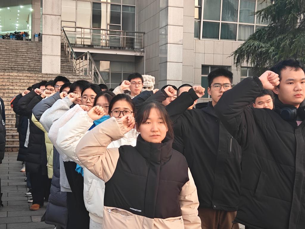 升旗礼毕,在领誓人的带领下,全体2025级新生举起右拳,面向国旗,进行庄严的“国旗下的宣誓”。铿锵有力的誓言划破晨曦:“志存高远,坚定信念;热爱祖国,服务人民;勤奋学习,自强不息;遵纪守法,弘扬正气;诚实守信,严于律己;明礼修身,团结友爱;勤俭节约,艰苦奋斗;强健体魄,热爱生活”一句句誓言,是承诺,是信念,更是新一代卓越工程师的初心与使命在这个冬日的清晨,卓工学子的誓言格外坚定而充满力量。