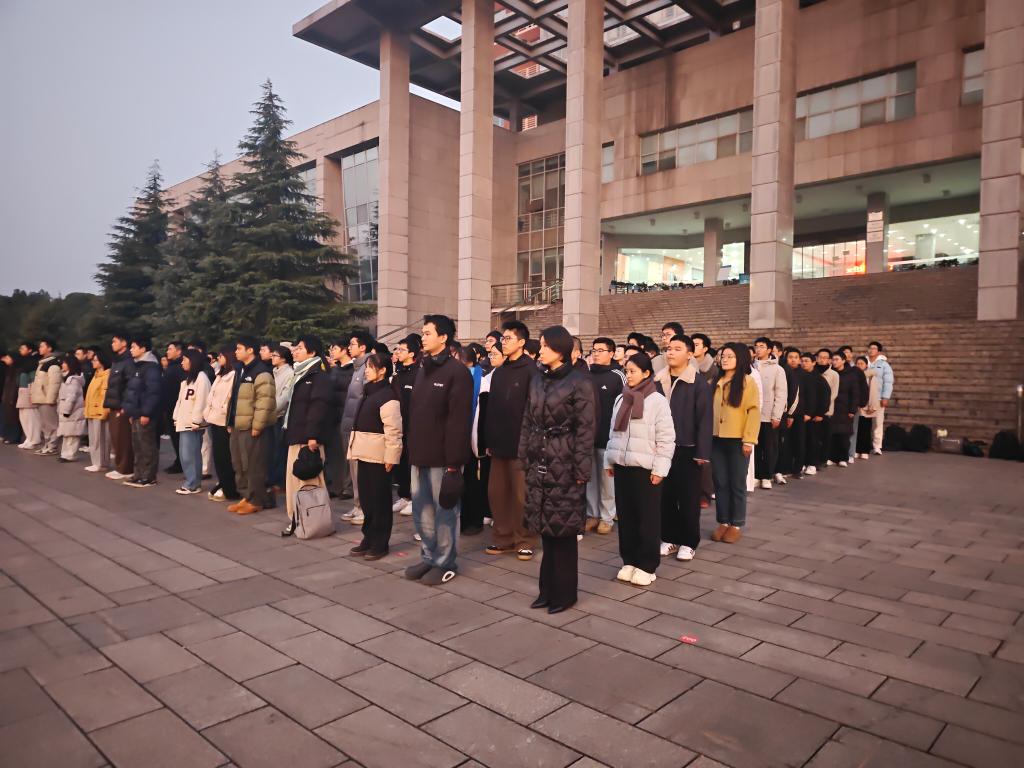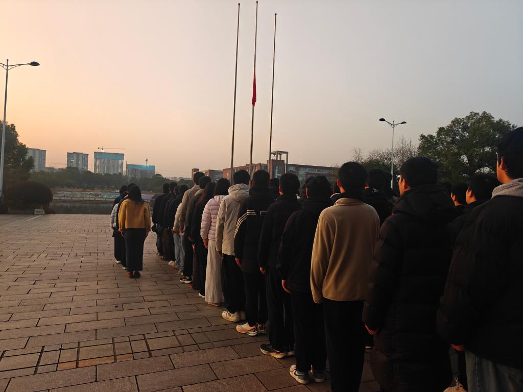 12月29日清晨6点40分天还未亮,卓越工程师学院2025级全体新生已在图书馆前坪列队完毕,准备举行升旗仪式。党委副书记陈华、辅导员潘枝花及国际工学院师生代表共同参加了本次升旗仪式。