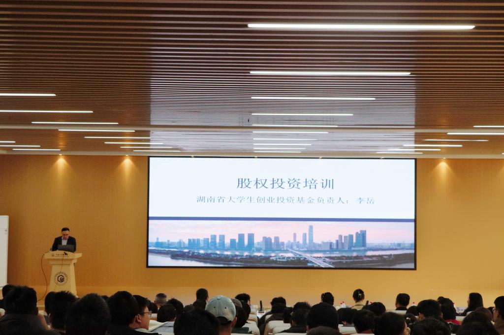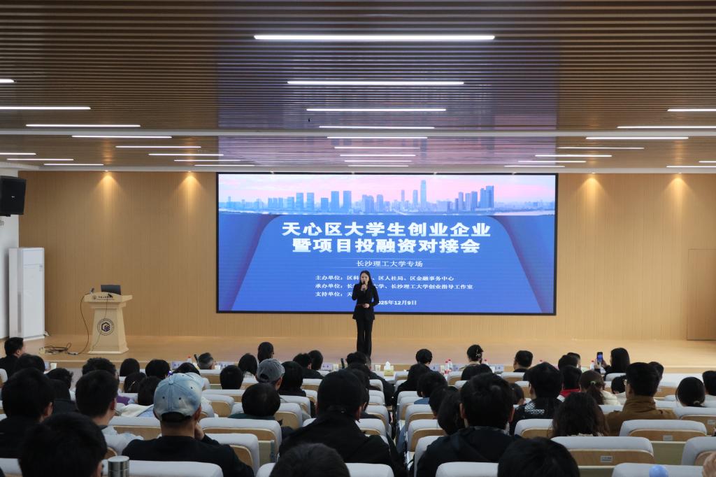 会上,李岳为创业学子开展股权投资专题培训。他结合自身投资经验,从投资人视角剖析融资关键,指导学生提升项目策划与商业表达能力。在项目路演环节,三支来自我校的优秀创业团队依次展示了他们的创业项目。“冰峰筑路”专注于高原冻土区道路工程技术,展现了我校在交通领域的科研转化实力;“湘桥智检”研发了基于人工智能的桥梁智慧检测系统,展现了团队在智能建造与维护方面的创新能力;“智荐品牌”致力于提供AI驱动的品牌全链路优化服务,展示了我校学子在数字经济领域的创业活力。最后,天心区相关部门负责人系统介绍了省、市、区三级支持大学生创业的各类扶持政策,为我校学生创业提供了清晰的政策指引与资源对接渠道。