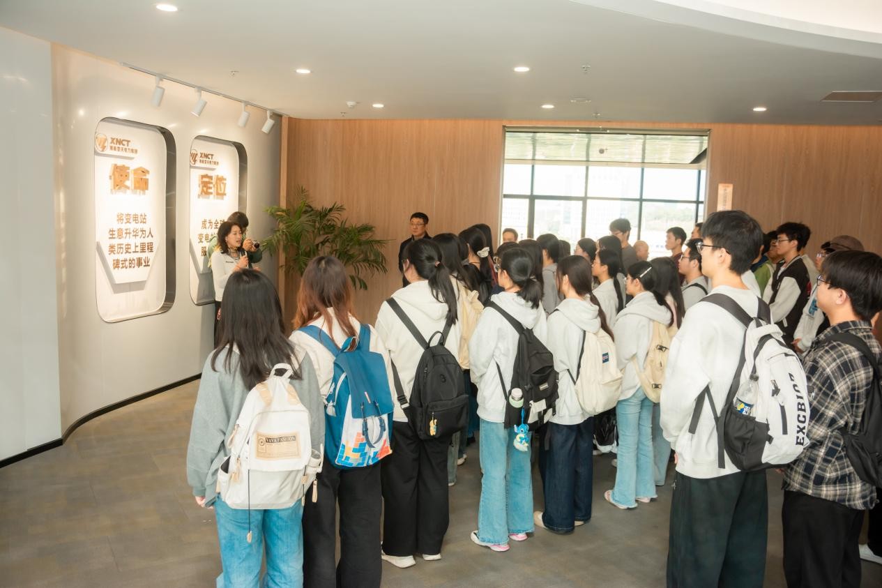为深化党建引领,促进校企协同育人,赋能学生创新精神与职业规划能力,2025年11月14日,2025年新澳门原料网站电气与信息工程学院将主题党日活动与创新创业、职业规划教育课堂“搬”进了湘能楚天电力科技有限公司。学院电气2407班全体学生、研究生党员代表及教师一行,在企业生产研发一线,聆听行业前沿声音,感悟工匠精神,共话职业发展。